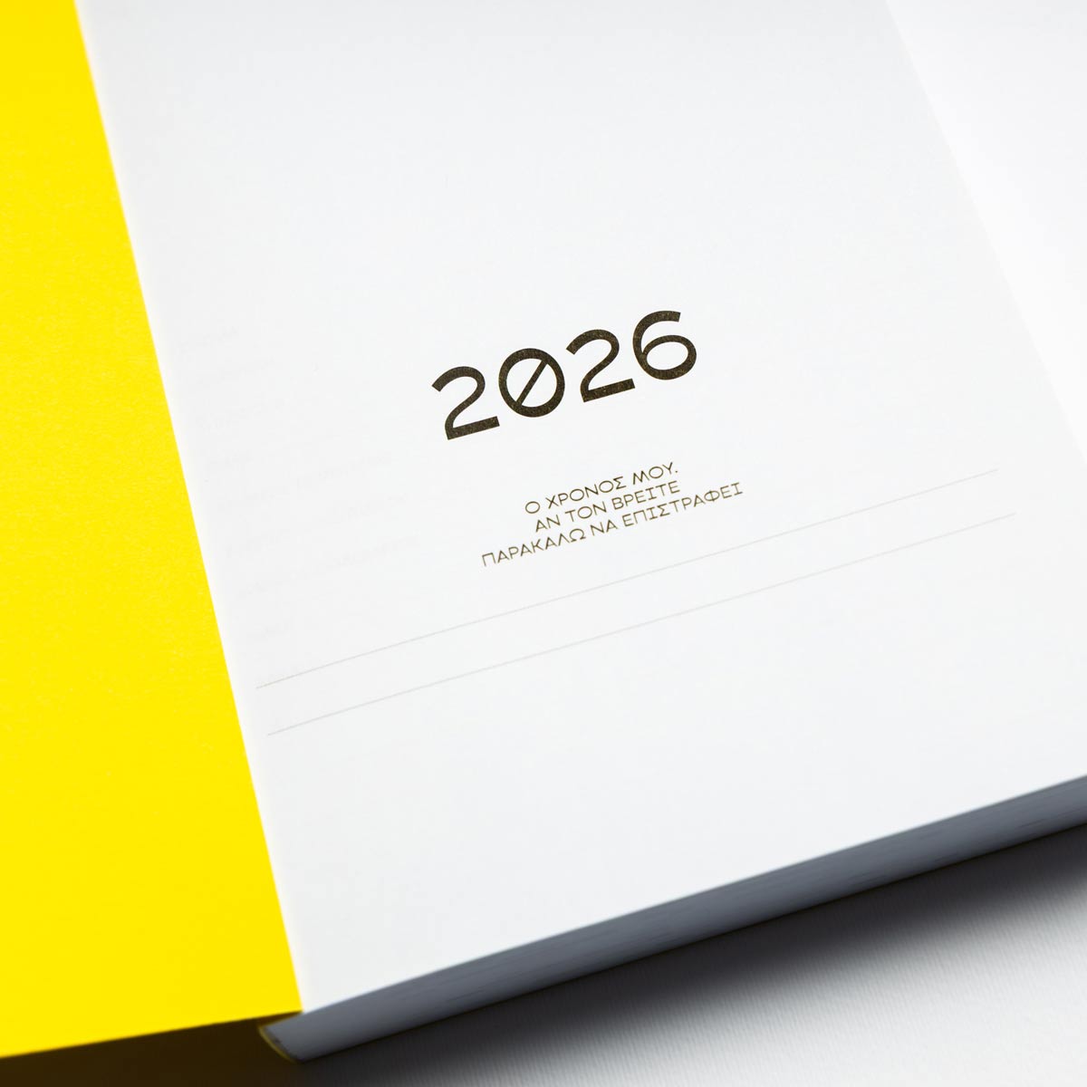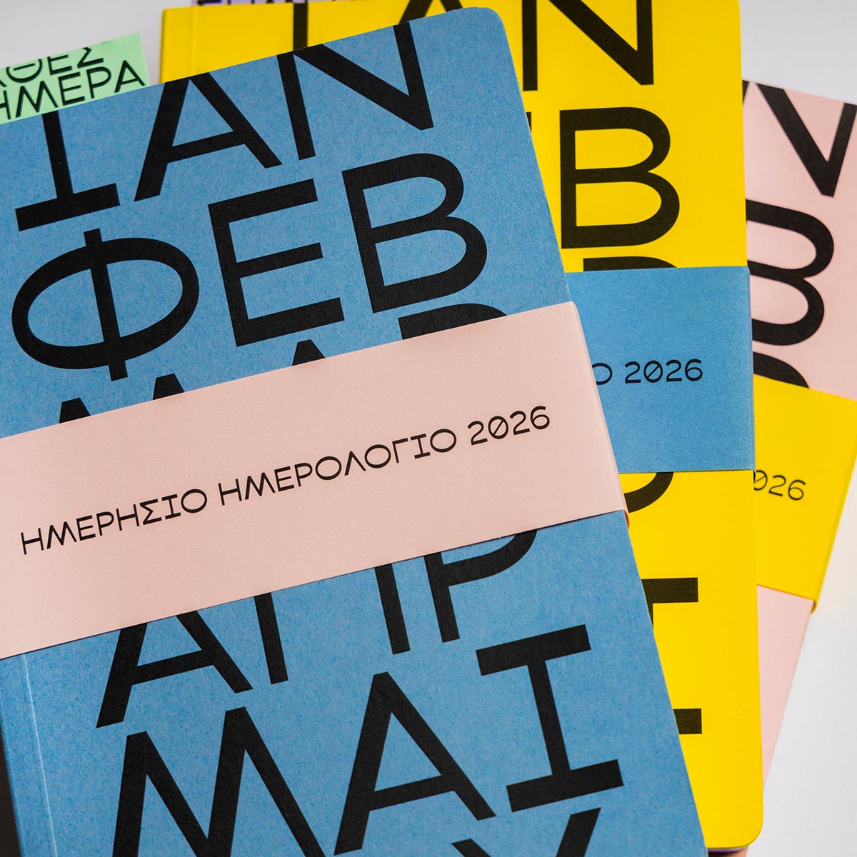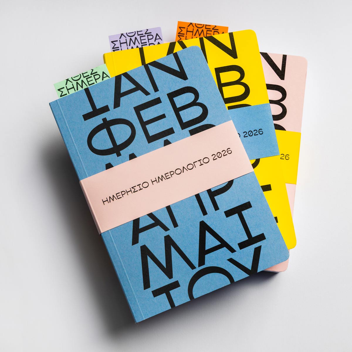 The FtoP 2026 Daily Planner – “My Time” is not simply a tool for organization, but a personal object that quietly reminds us that our time belongs to us. Inspired by both the passing and the suspension of time, it draws from that liminal moment —when one day dissolves into the next and time seems to pause, if only for a breath. Conceived as a dialogue between “now” and “then,” the planner’s visual identity, curated by today studio, bridges the old and the contemporary through bold, restrained typography and a carefully selected palette of Colorplan papers by Perrakis. The result is a calm, tactile object designed for everyday use, for those who seek to hold time in their hands and, even briefly, make it stand still.